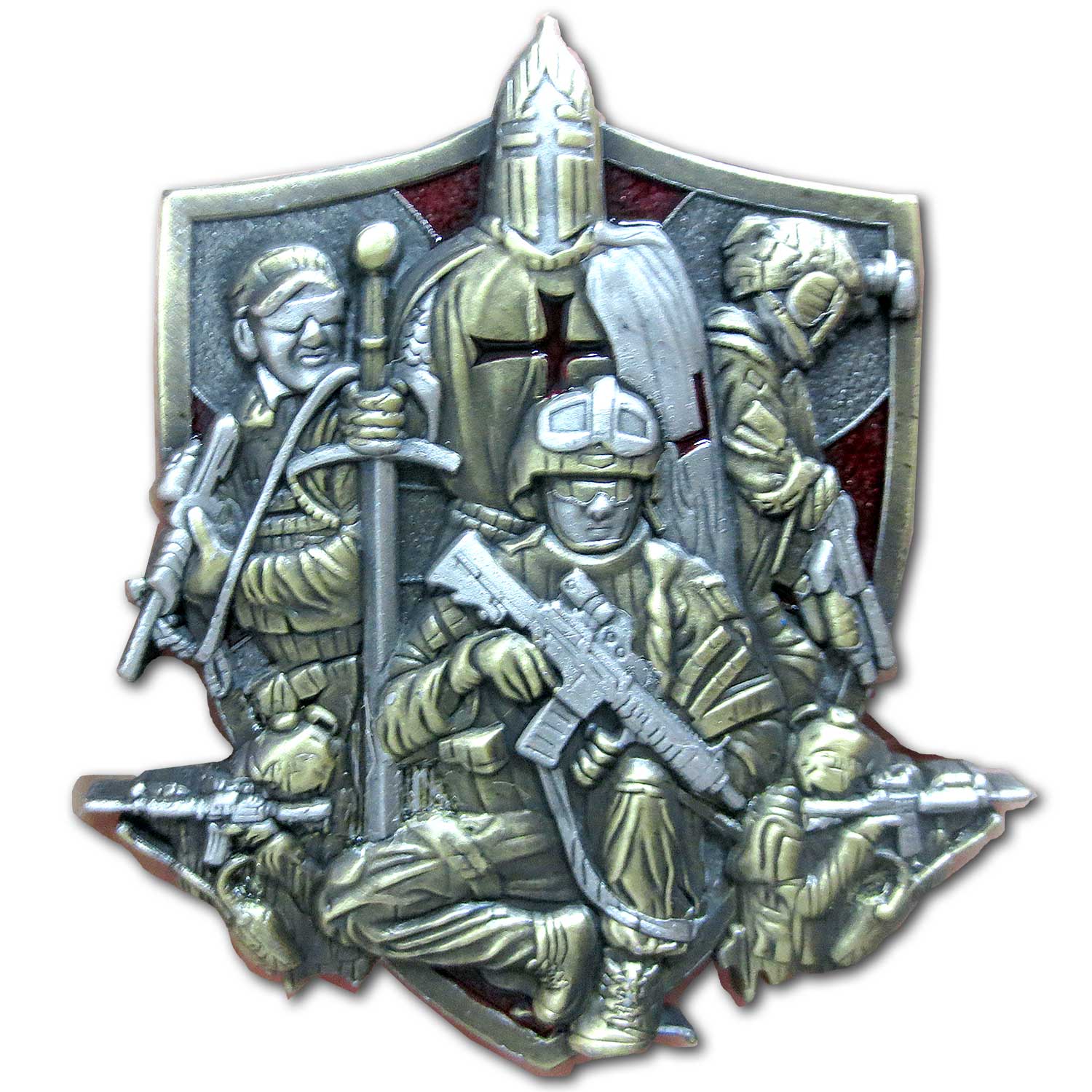 - Deep 3d relief with antique silver and gold accents